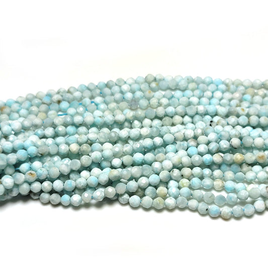 Larimar Gemstone approximately 2mm Faceted Round Beads (~170pce Strand) - 38cm/15" Strand.