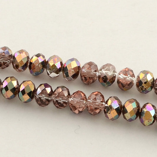 Half Plated Faceted Abacus Glass Bead Strands, Peru, 6x4mm, Hole: 1.5mm; about 100pcs/strand