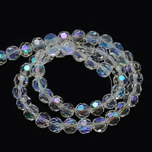 Clear AB Colour Electroplate 8mm Round Glass Beads