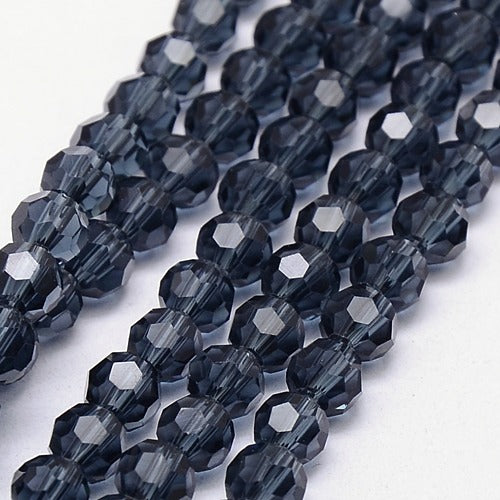 Steel Blue 6mm Faceted Round Glass Beads