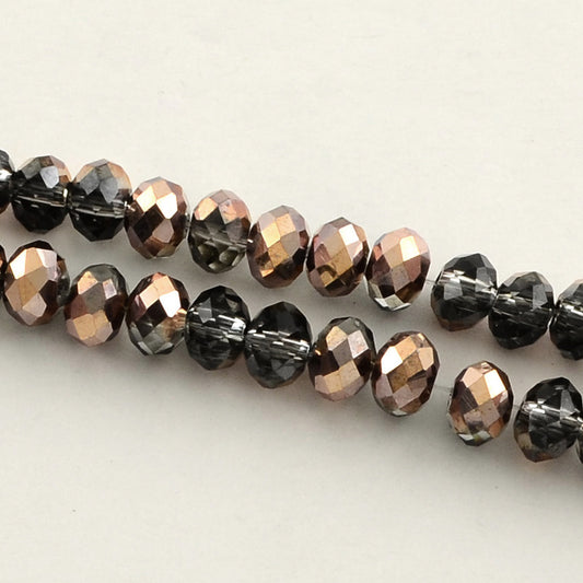 Coconut Brown Half Plated 6x4mm Faceted Abacus Glass Beads