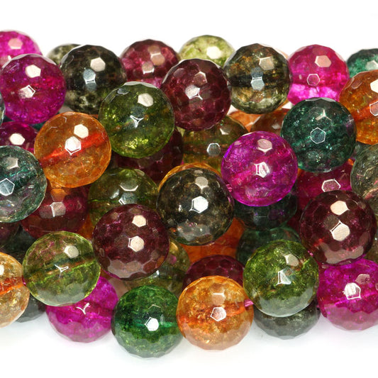 Cracked Glass Multi Colour 10mm Faceted Round Beads