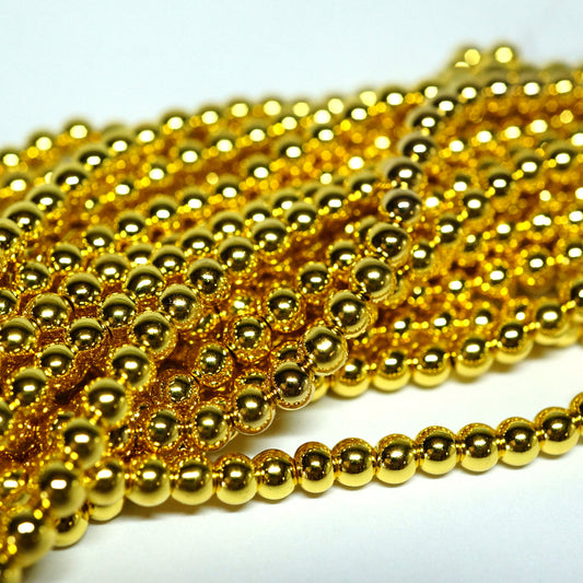 18K Gold Plated Hematite 4mm Round Beads (~100pce Strand) - approx 40cm /16'" Strand.