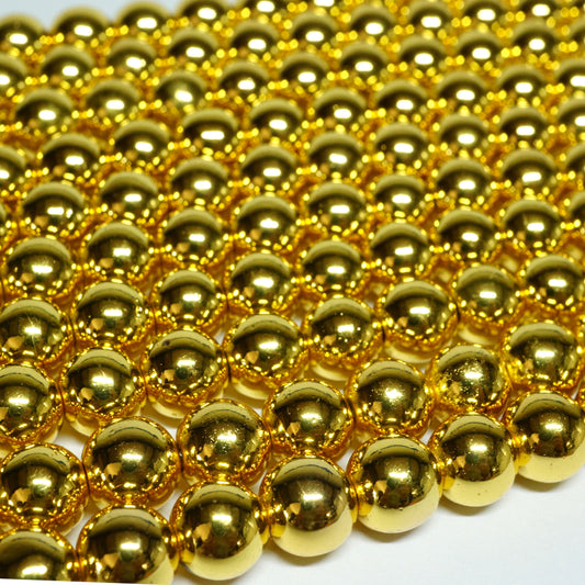 18K Gold Plated Hematite 8mm Round Beads (~50pce Strand) - approx 40cm /16'" Strand.
