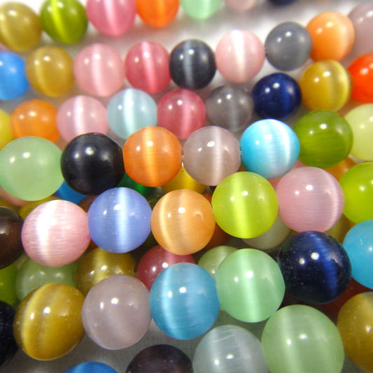 Multicolour Cats Eye Glass Beads Round 6mm (~66pce Strand) - 40cm/16'" Strand.