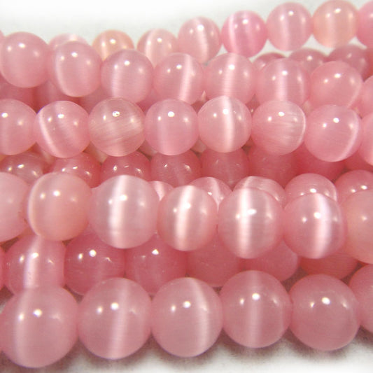 Cats Eye Pink 6mm Round Beads
