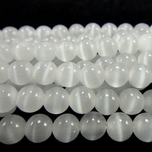 Cats Eye White 6mm Round Beads