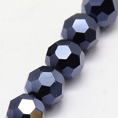 Hematite Electroplate 6mm Faceted Round Glass Beads