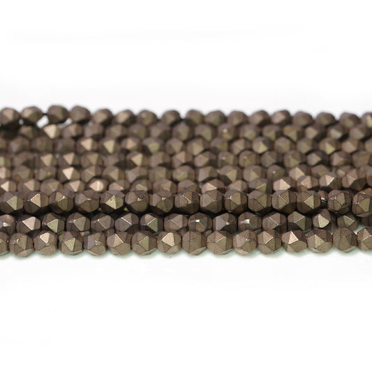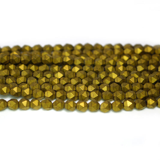 Matte Golden Hematite 4x4mm Diamond Cut Beads - 38cm/15" Strand.