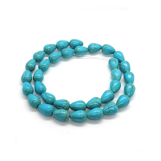 Synthetic Turquoise 8x12mm Drop Beads (~34pce Strand) - 40cm/16'" Strand.