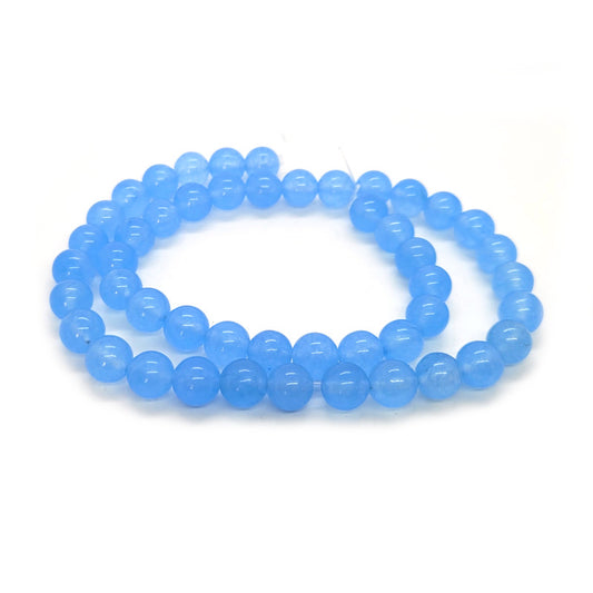 Malay Jade Light Blue (Dyed Quartzite) 8mm Round Gemstone Beads (~48pce Strand) - 38cm /15" Approximate Strand.