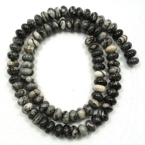Black Veined Jasper Stone Rondelle 5x8mm (33pce Strand) - 40cm /16'" Strand.