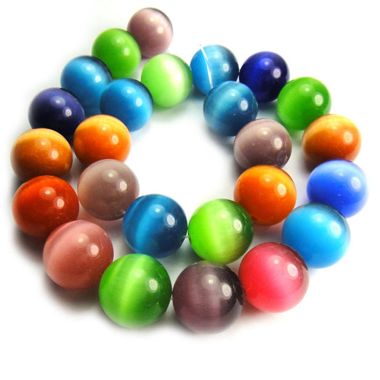 Multicolour Cats Eye Glass Beads Round 10mm (~40pce Strand) - 40cm /16'" Strand.