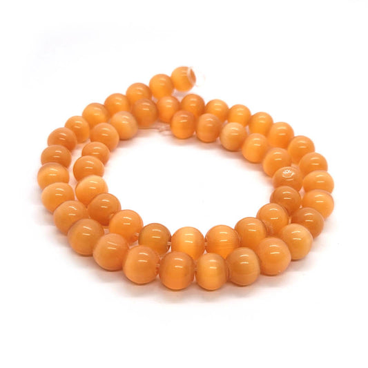 Light Orange Cats Eye Glass Beads Round 8mm (~48pce Strand) - 38cm/15" Strand.