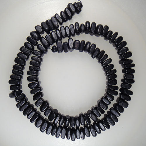 Coco Wood Beads Dyed Black 4x6mm Approximate (~100pce Strand) - 40cm Strand.