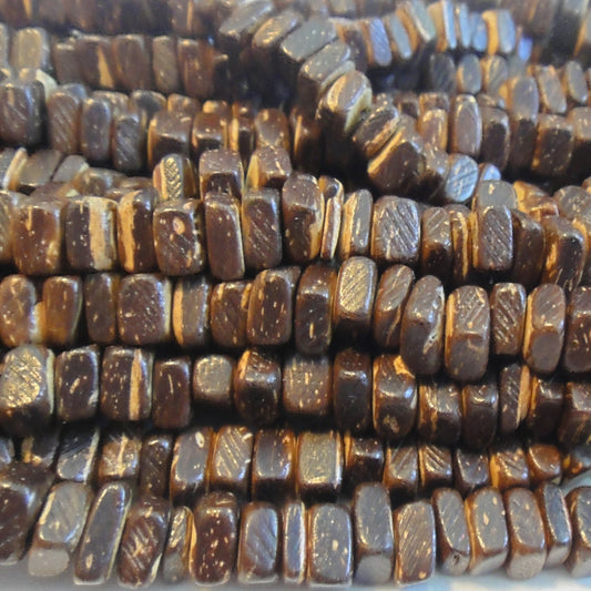 Coco Natural Brown Wood Beads Square 7x7mm (~100pce Strand) - 40cm/16'" Strand.