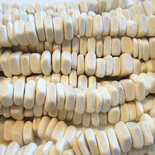 Coco Bleached White Wood Beads Pokalet 8-9mm (~100pce Strand) - 40cm/16" Strand. Size's are approximate.