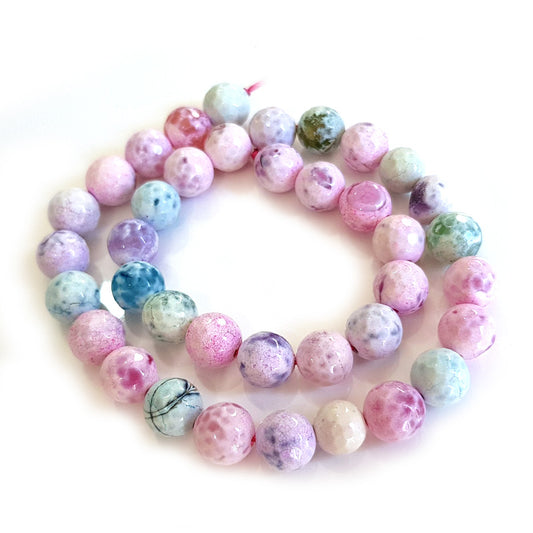 Fire Agate Pastel Colour 10mm Faceted Round Beads