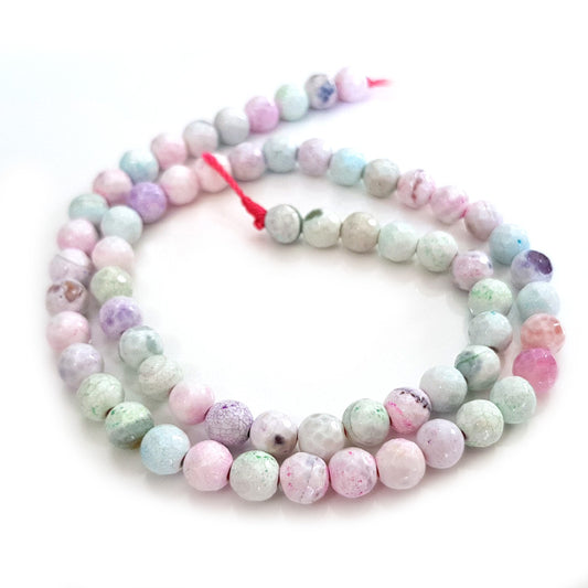 Fire Agate Pastel Colour 8mm Faceted Round Beads