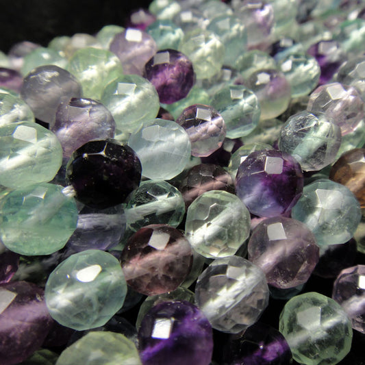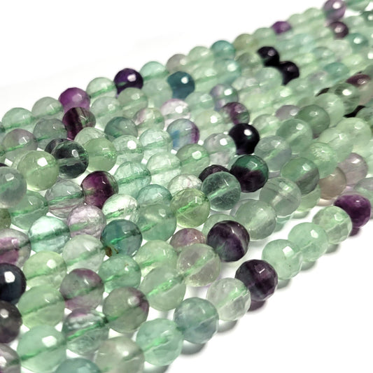 Fluorite 8mm 128 Faceted Round Beads