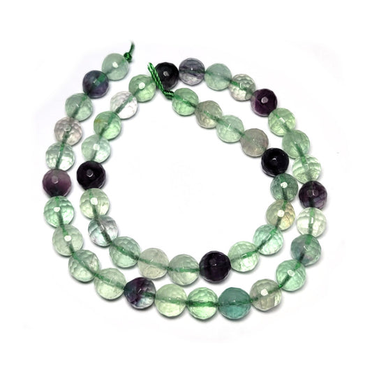 A Grade, Fluorite Gemstone 64 Faceted Round 8mm (50pce Strand) - 40 cm/16'" Strand.