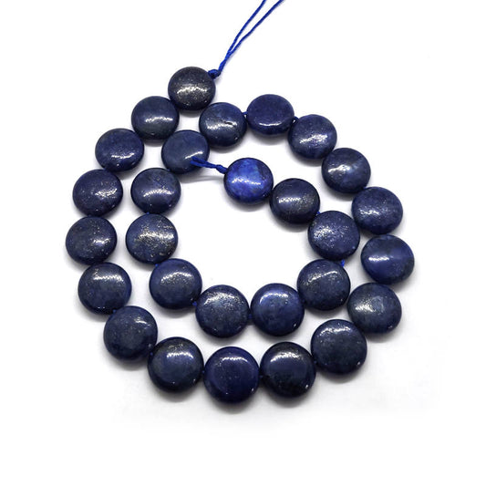 Lapis Lazuli Gemstone Coin 14mm Beads - Dyed - 38cm /15" Strand.