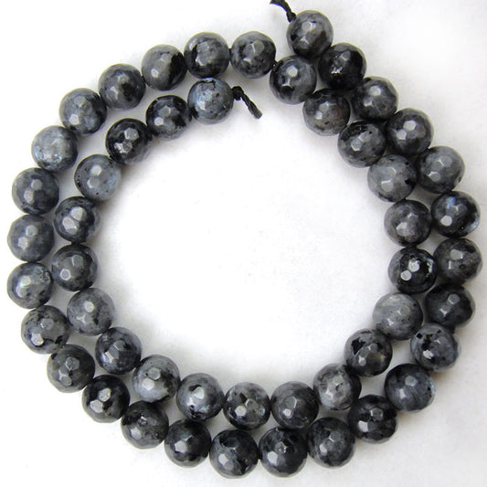 A-Grade Larvikite Gemstone Faceted Round 8mm Beads (~50pce Strand) - 40 cm /16'" Strand.