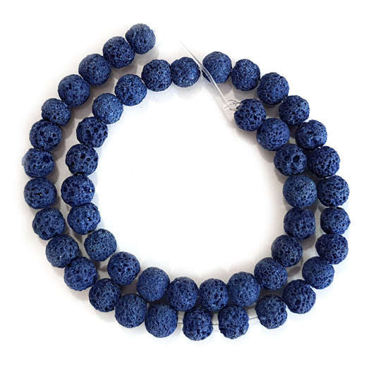 Dyed Lava Rock Cobalt Blue 8mm Round Stone Beads (~50pce Strand) - 40cm /16'" Strand.