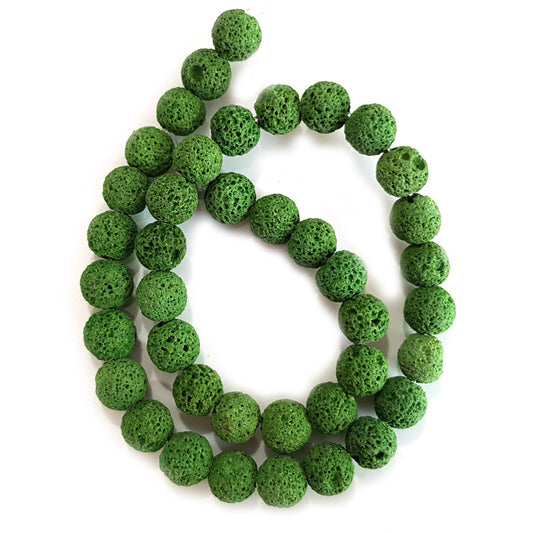 Dyed Lava Rock Green 10mm Round Stone Beads (~40pce Strand) - 40cm /16'" Strand.