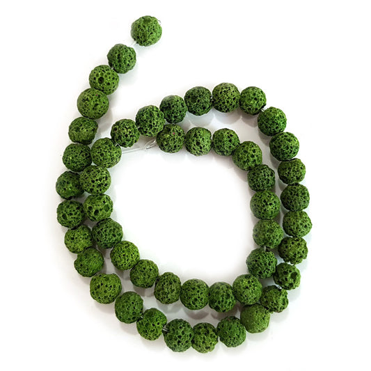 Dyed Lava Rock Green 8mm Round Stone Beads (~50pce Strand) - 40cm /16'" Strand.