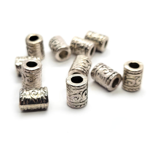 Tibetan Silver Large Hole Tube Beads (Pack 10)