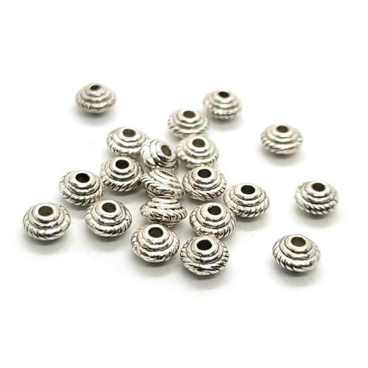 Pack of 20 antique silver colour, Tibetan Silver alloy saucer spacer beads. Approximate Size: 5x3mm, Hole Size: ~1mm