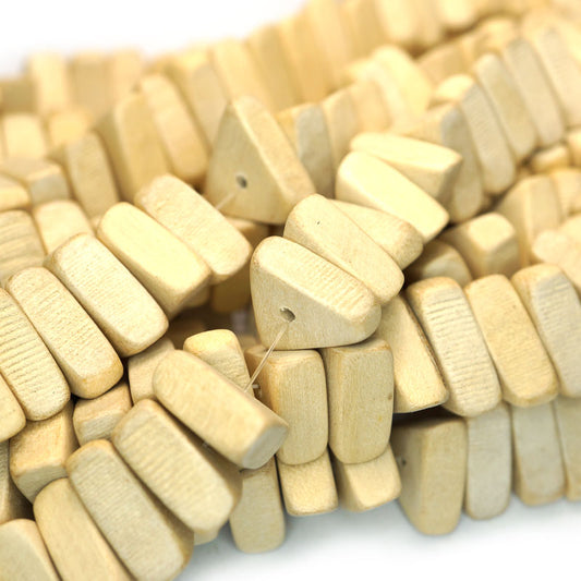 Natural White Wood Triangle Nugget 7x11x9mm Wood Beads (~53pce Strand) - 40cm/16'" Strand.
