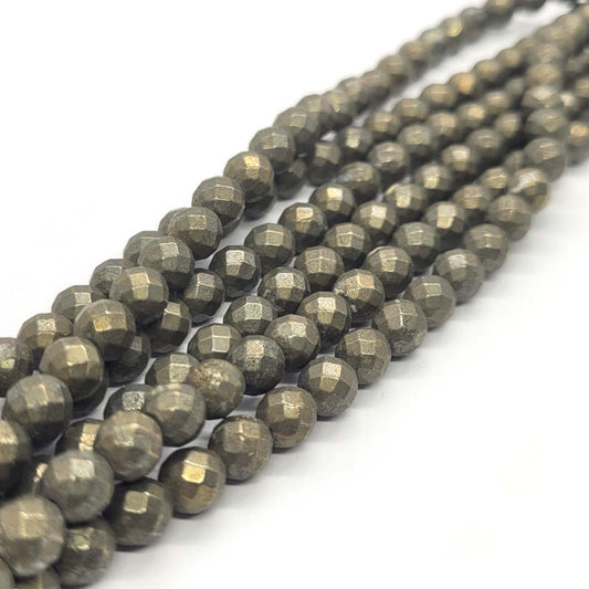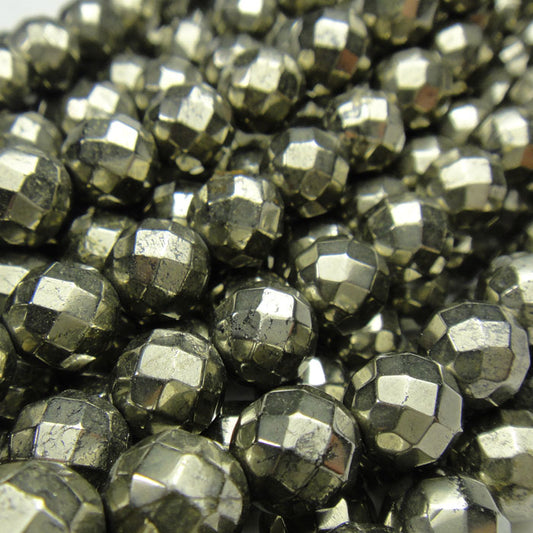 Pyrite 6mm 64 Faceted Round Beads