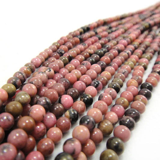 Rhodonite Gemstone Round 4mm Beads ~38cm/15" Strand.