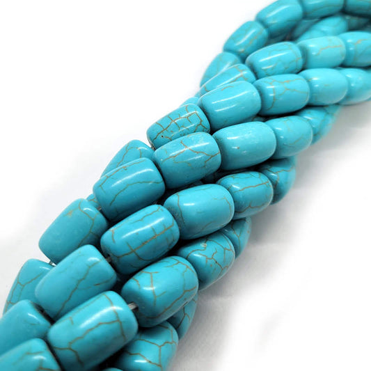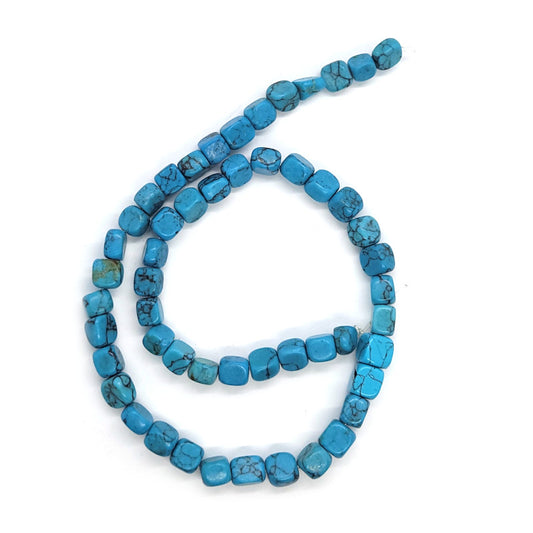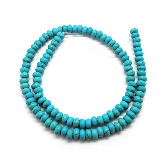Stabilised Turquoise, sometimes called Natural Turquiose has been put under pressure with a clear epoxy resin which hardens the rock. Sometimes dye is added if needed. Reconstituted or Compressed Turquoise is a soft turquiose with chalk-like consistency. The powder is dyed and stabilised. The resin, under pressure absorbs into the rock.