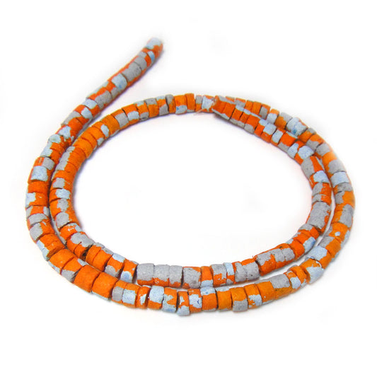 Coco Heishe Wood Beads Painted Orange with contrasting coloured Splashing 4-5mm (~115pce Strand) - 40cm Strand.