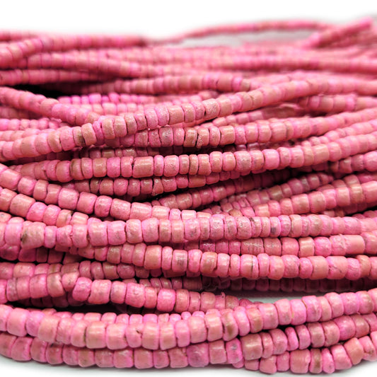 Coco Wood Beads Dyed Pink 3x4mm Approximate (~150pce Strand) - 40cm Strand.