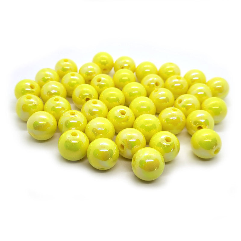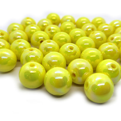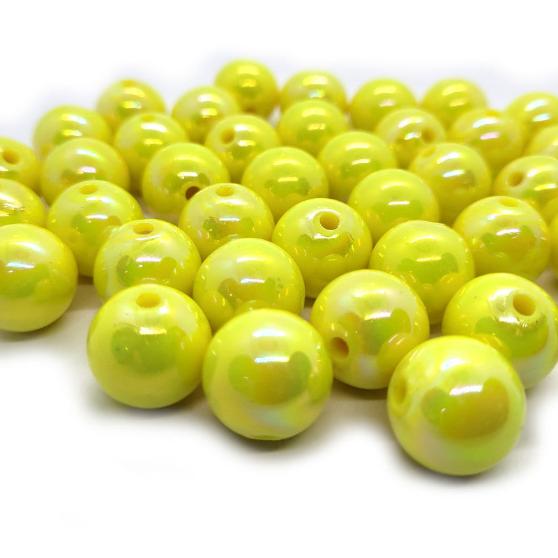 Pack of 40 AB Plated Yellow Acrylic Bubblegum Beads 16mm Round. Hole Size approx 3mm.