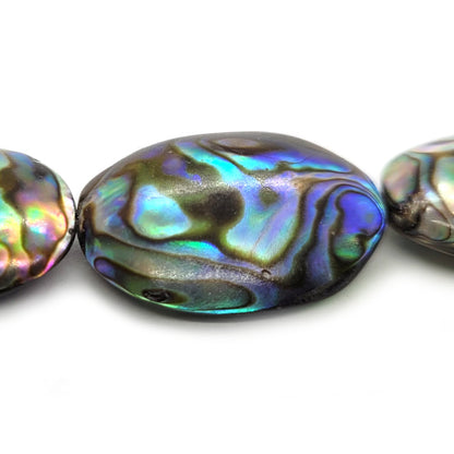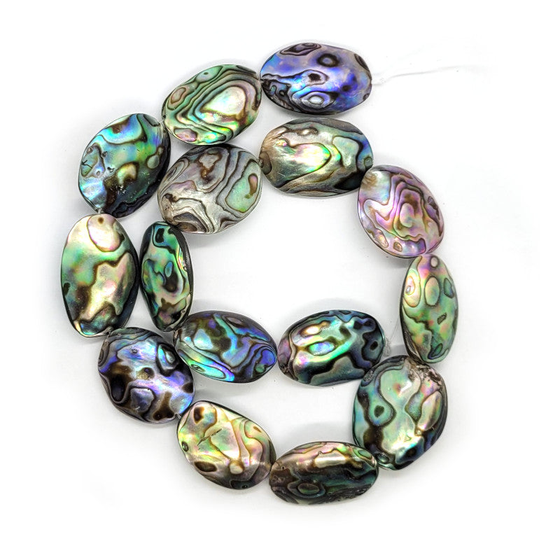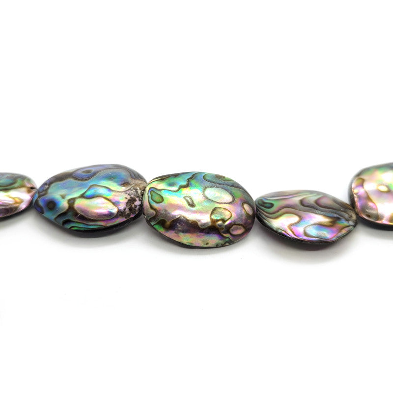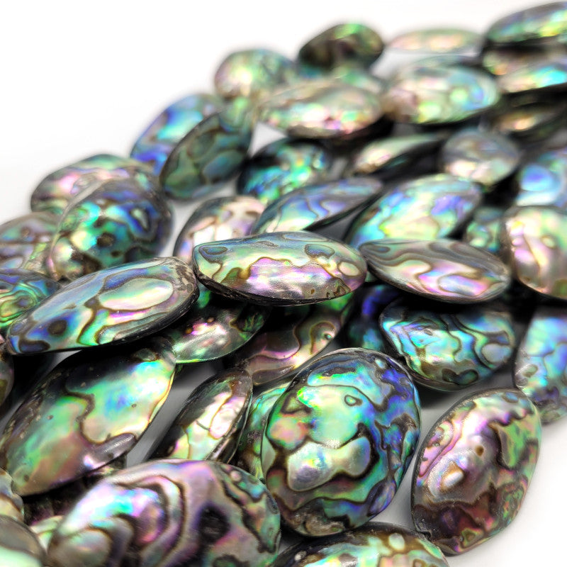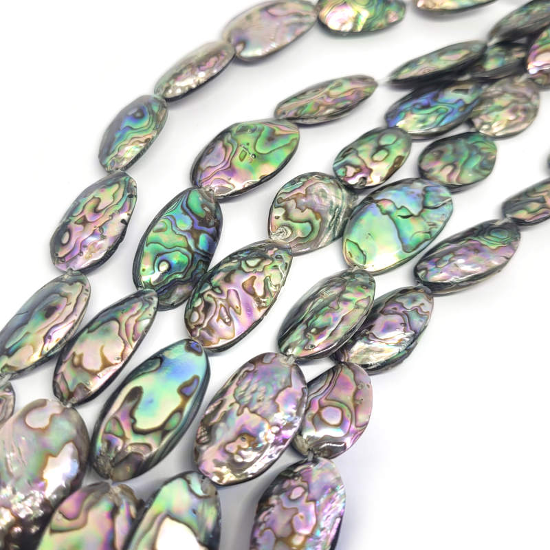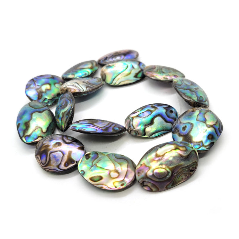 Abalone is a shell but is considered as an organic gemstone, similar to pearl and coral. Abalone has been used in jewelry making and religious ceremonies for countless ages. Abalone may also be called Mother of Pearl, or by the name Sea Opal, due to the iridescent blues and greens that are produced when polished, which is similar to the colour play of an Opal. Please note bead size and shape will vary.