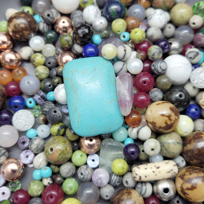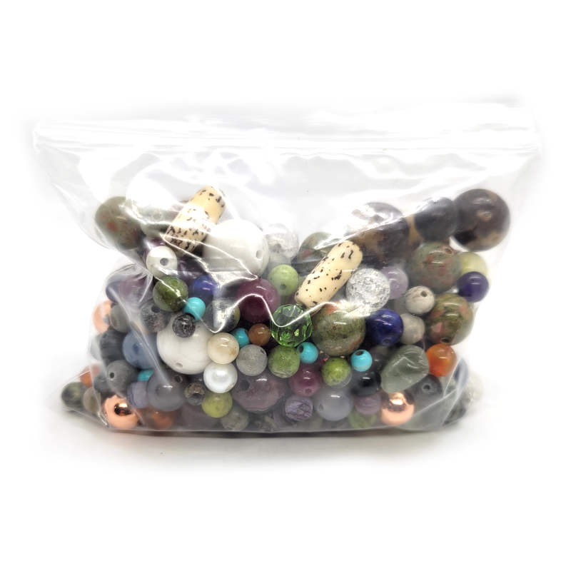 Bead Soup Mix (150g Bag). A randomised mixture of beads. Different types eg. Gemstone, Glass, Wood ,Shell or Metal may be present. Please note all bead types, colours, sizes and shapes vary.