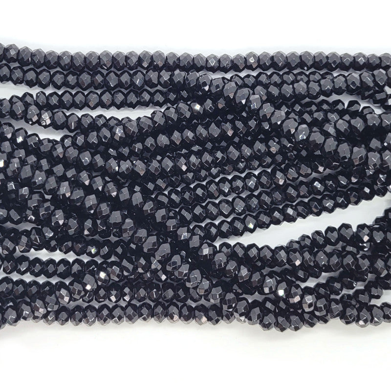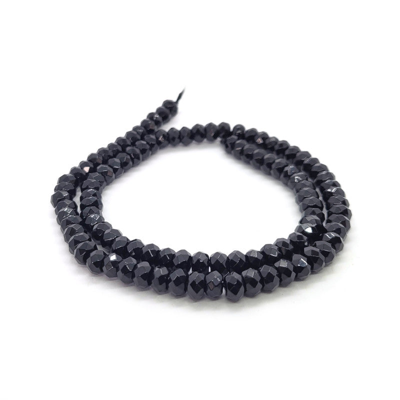 Black Onyx Gemstone Faceted 4x6mm Rondelle Beads (~98pce per Strand) approx 38cm / 15" Strand.