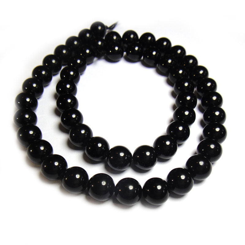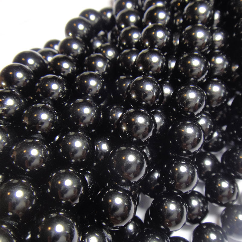 Black Tourmaline Round 8mm Gemstone Beads (~38cm Strand).
