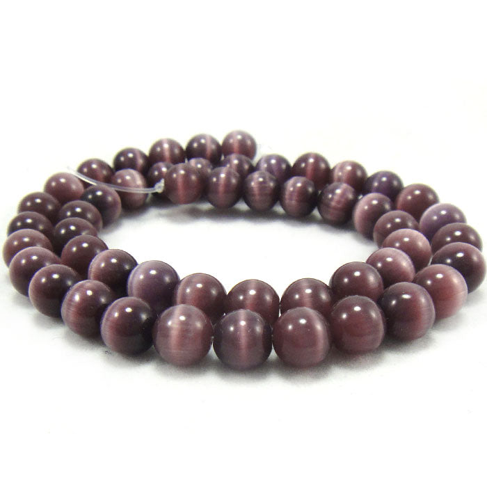 Deep Purple Cats Eye Glass Beads Round 8mm (~50pce Strand) - 40cm/16'" Strand.