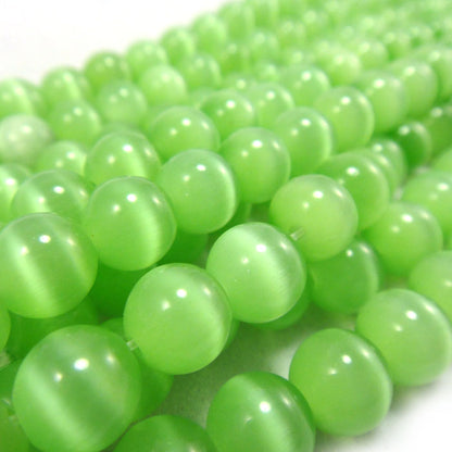Light Green Cats Eye Glass Beads Round 8mm (~50pce Strand) - 40cm/16'" Strand.