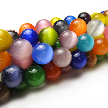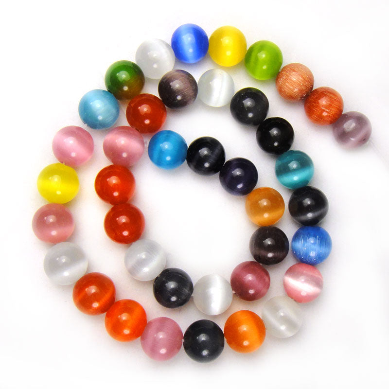 Multicolour Cats Eye Glass Beads Round 10mm (~40pce Strand) - 40cm /16'" Strand.