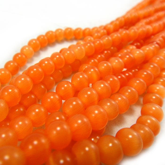 Cats Eye Orange 6mm Round Beads