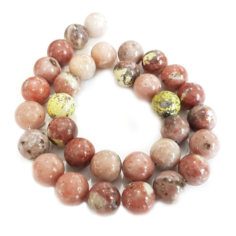 Natural Cherry Blossom Jasper 12mm Round Gemstone Beads (~31pce Strand) - 40 cm /16'" Strand.