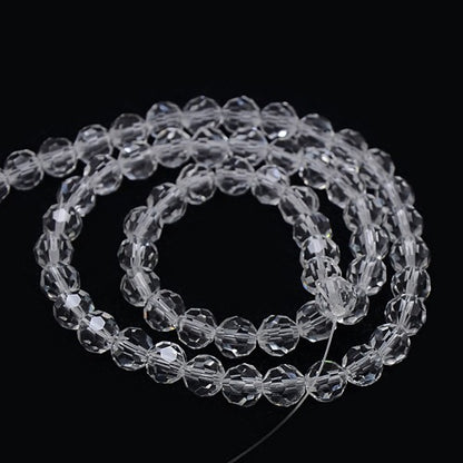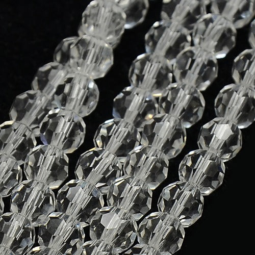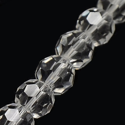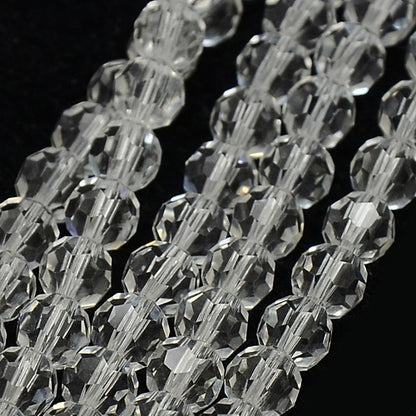 Glass Beads Strands, Faceted, Round, Clear, 6mm, Hole: 1mm; about 91pcs/strand, 21.5"