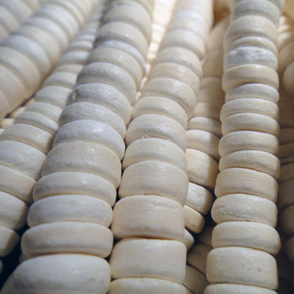 Coco Bleached White Wood Beads Pokalet 8-9mm (~100pce Strand) - 40cm/16" Strand. Size's are approximate.